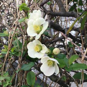 ボケのお花がまだ咲いていました! 実も初めて見ました! 実は、疲労を回復させたり、咳止め効果があるため、ボケ酒やジャムにして食べると良いそうです。