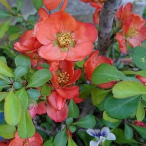 ボケの鉢植え スミレが間借り中((´艸`*))