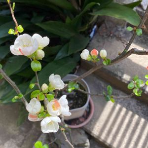 今日もおつかれさまでした😊👍 きのうのお出かけ… 道路脇の空き地に咲いていた「白い花」✨ 「ボケ」の花だと思います😊😊😊 枝の間にスマホを突っ込んで一番綺麗なところを撮りました🍀🍀