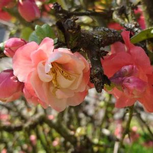 桃色に白い縁取りのある木瓜の花が咲き始めました🌸💓💓💓