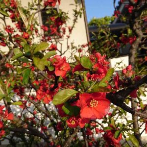 二月に見つけた木瓜を見に🕶 こんなに可愛く💕 沢山のお花が咲いていました🤗