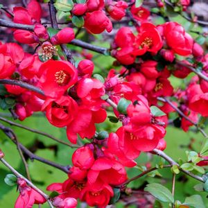 朝通勤時に見かけたボケ。赤色が鮮やかでした。