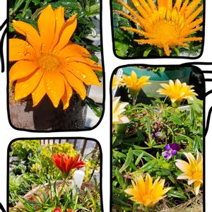 昨日投稿の 株分けをしたガザニアのお花が咲くとこの様な感じです✨ 日に照らされると 眩しいくらいに鮮やかに見えます💛(1) (2)はオレンジです (昨年6月)