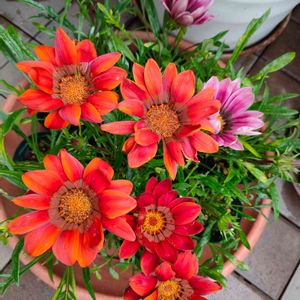 我が家のガザニアさん… 挿し芽増殖… いつの間にかそれぞれ咲いちゃってます😋元気だわ〜💕