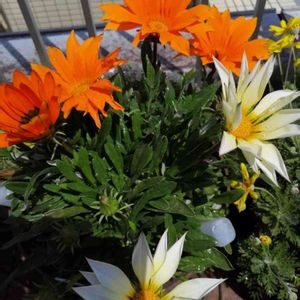 我が家のガザニア🧡🧡🧡🧡 ホワイトもだー😄 眩しい〜🌞😁