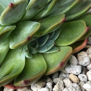 我が家のモモちゃん🍑🌵 (エケベリア 桃太郎) 1年間で一回りくらい大きくなりました🌵 今は梅雨なので、ベロ〜ンとしていますが、秋以降には可愛い😍姿を見せてくれる、はず🌵🌵🌵