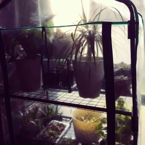 室内にあるビニールハウス。 右は高温多湿じゃなきゃ生きていけないネペンテス たちで、左は加湿不要のグズマニアやポトスと加湿嫌いな多肉ちゃんたち。 ちなみに、多肉ちゃんたちは下の段に居て昼間はビニールを上に上げてるからムンムンしなくて済むんです😘 ちなみに、桃太郎ちゃんは左の1番下にあるガラスの上にぽつんと… 追記 なぁ〜んだ、エラーで最初の投稿はアップに時間がかかってたのね。 似たような投稿、ごめんなさーい。