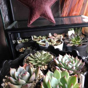 「この3つの中で、どれが良い?」 (o^^o)早速に旦那さんの部屋へ新しく到着したエケベリア桃太郎&チワワエンシスを持って行き、3つを並べて聞いてみました💙 「さっき届いたのはコレ?」 そう言いながら見比べてから…やっぱコレだね🤔✨っと、桃太郎ちゃん1号を指差して「この子が1番💕」 理由を聞くとチワワエンシスを指差して「こっちは薔薇みたいだし、こっちは菊みたいじゃん」 (-.-)y-., o O 今日は会社が定休日だから、もしかしたらお買い物に連れて行ってもらえるかなぁ〜と期待したんだけど… やはり来週か…