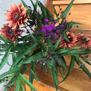 いつもの花屋さんで又ルドベキアと変わった花を買ってきました🧡🤎💜どたらも色が素敵〜🧡🤎💜