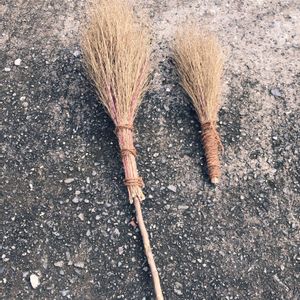 ほうき草でほうき作り 掃除用具としてはもちろん🧹 娘の魔女宅ごっこにも 🐈⬛ 秋空を魔女が飛びだってます