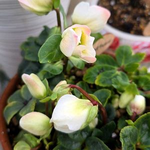 ニゲル 例年なら時期の1番先に咲き始めていたのですが、やっと開花です。 まだ土から顔を出した蕾等々、花数はありそうですが👍😉 クリスマスローズ全体的に例年に比べ少し早い開花のようです…。 1.2 ニゲル🤍 3. ダブル🤍 4.咲き進みで🤍→🩷(出かけ先で購入🌱自分土産の初開花) 5.今季、1番咲きのヒラヒラ🥀の鉢植え🥰 値のはるものは無いですが🤭💦さすかに昨夏は酷暑でいくつかダメになったので、確認兼ねての開花🥀は 嬉しさひとしおです。 難しい世話要らずは ありがたい🌱👌😃と思えるクリスマスローズさん達です🥰👍