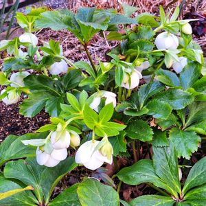 クリスマスローズ ニゲル ニガーさんと蕾さんたち💕 開花1号でupしたニガーさんの次の お花が二輪とも咲きました🤍 つぼみの時の状態通り1つは下の方で下を向いて、もう1つはちゃんと上を向いて咲いてくれました😊 他の子達も蕾のない子には蕾ができ、蕾があった子たちは蕾の数が増えたり、大きくなったり、家の庭にもクリスマスローズの季節が着実に近づいてくれています🌸🎶 クリスマスローズの蕾さんたちで 🏷️金曜日の蕾がたちでお願いします
