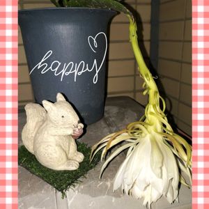 こんばんは~やっと涼しくなり猛暑でボロボロになった多肉を片付けようとベランダに出たら😳💞 ナント👀✨花友さんが🎁してくれた月下美人に蕾を発見しちゃいました〜😆💞 1枚目~は全体像 見守り隊はみたりんさん🎁のリス🐿️君💞 2枚目~は月下美人蕾をZoom🔍🥰 この状態からどのくらいで開花するものかな?🙄💦 見落としそうで怖い😆💦 3枚目〜はベランダ片付けで見付けた蕾達😍👌 ☝️このランタナは道端に咲いていて道路清掃で切られてしまいそうな所を少しレスキューして来たら根付きました🥰 👇️こちらは百均の🌵トルカちゃん みたりん産モンスターぺこちゃん鉢に植えておいたらいつの間にか花芽が😁💘💘💘 応援隊は雫ちゃんのお花ピータン 急に涼しくなり植物達は元気になって来ますね~😘🎶