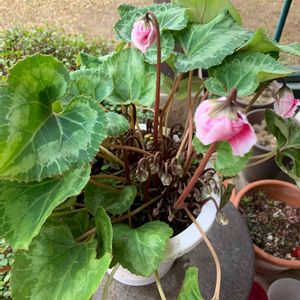 昨年のシクラメンです。 木の下に放置状態😔見てみると、花が咲いていてびっくり😵良く頑張ったねて玄関先に入れました。嬉しいなぁ🌸