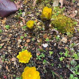 ようやく咲き出した福寿草 花の後も長〜く楽しめるのが良いです😊