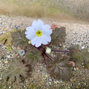 昨年鉢植えで購入したプリムラシネンシス 鉢植えはダメに‼️でも、こぼれタネで育ってる❣️窓の軒先で😊