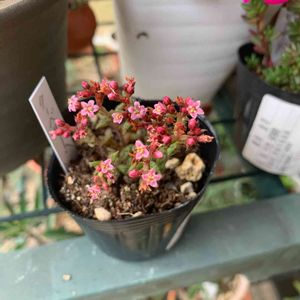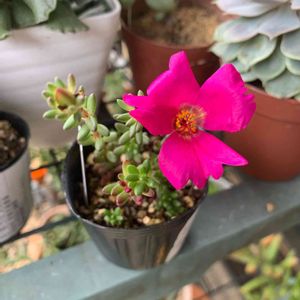 おはようございます😊曇り空なので 日差しが強くなく嬉しいです😃 多肉ピンキー咲いて来ました💕 ポーチュラカのお花の様です🌸 仲間かなぁ〜🙄