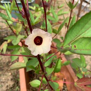 ベニアオイのお花です🌼 まるでオクラの花の様です😃 昨年の秋切り花で購入した物の種を 春に撒きやっとです😔 なんか長すぎる〜🤔