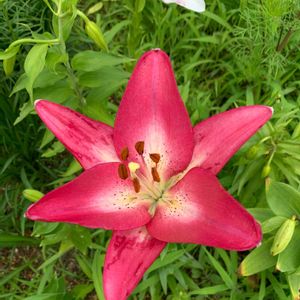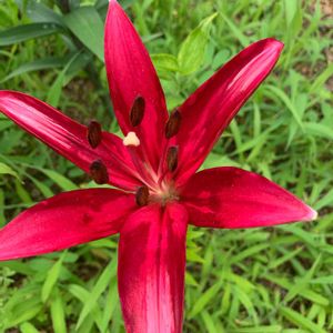 真っ赤なスカシユリ今朝咲いていました😊