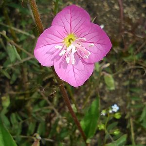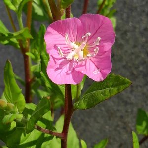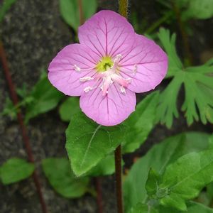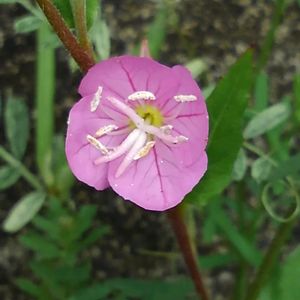 アカバナユウゲシヨウ(赤花夕化粧) *アカバナ科マツヨイグサ属 花期は5〜10月 高さは20〜30cm アメリカ大陸原産で明治時代に鑑賞用として導入されて関東以西に野生化した多年草となっていますが! ここ岩手県にも2色揃って咲いています。もちろん宮城県にも! 葉は互生し広円形で縁は波状の鋸歯! 4花弁で脈が入り、中心部は黄緑色! イメージは在来種のアカバナに似ますが柱頭が4裂けし、果実は棒状にならない! 10月13日撮影