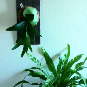 ビカクシダ アルシコルネ。 工房で育成中。 迎えて2年ほど経ちますがほとんど姿変わらずです。 もう少しカッコいい板につけたいなあ。