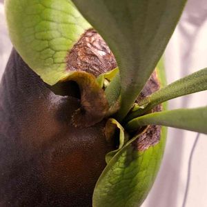 育成ライトに接触したアルシコルネの胞子葉が焦げました😭 発色も良く、綺麗に伸びていたので後悔してもし足りない……。