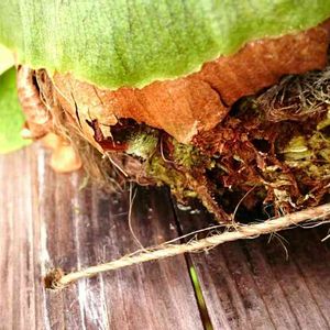 前にもチョロっとかいた気がするけど この株を買ったとき、貯水葉のみの苗だったけれど アルシコルネってビフルみたいに 胞子葉だけの苗をよく見る これって、どういうことなんだろうなぁ? と、不思議に思っている 不定芽を無理矢理ひっぺがして植えてたのか、な…?