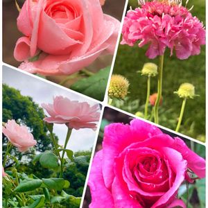 19日はピンクの日🏷に参加させて頂きまーす💕 左2つはナエマさん🌹 右はスカピオサ クイズサーモンピンクと挿木のバラ🤗✨✨