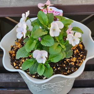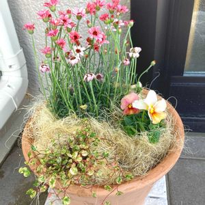 2023 寄せ植えNO22 カゴ型陶器鉢に寄せ植え🌸
