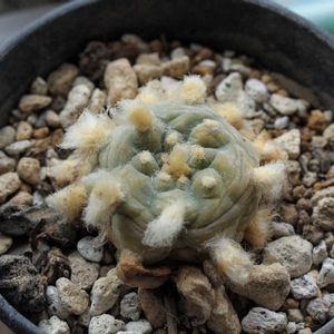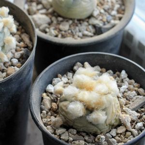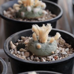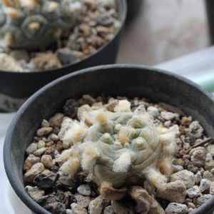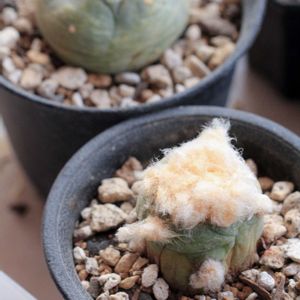 ツルビニカルプス アロンソイ 雨ときどき曇りの中、開花☺️ 2〜5:ロフォフォラ 銀冠玉 なんか怖くて外に出せずにいます😖 そんな状態でもお花を咲かせてくれました✨ 多毛のコは花色が思った以上に薄い😅