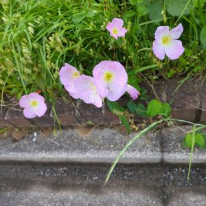 道端の(モモイロ?)ヒルザキツキミソウ。