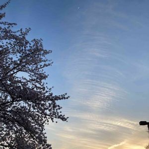 🌸夜桜と三日月🌙 4月6日 20時48分撮影 西の空に三日月🌒24.2%✨✨🌙 背の高い大きな古い桜の木🌸🌸🌸