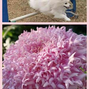 晴れていますが風が強く吹いています 今晩は寒くなるようですね 木枯らし1号❓ もう少し晴れ間が出るかと思って群馬の世界の名犬牧場に昨日 行って来ました 晴れ間が無かったので少し肌寒かったけど 小型犬用ドックランでポメちゃんと遊んたり アジリティーで遊んだりして来ました😊💕 ピンク色の菊 かがり弁 最初は花びらの先だけお花のようになるのかと🌸 これが完成型なのでしようか❓ 全体に細かくお花になって行き、まん丸な花姿になりました♬.*゚ 白のお花も同様にまん丸に💖 黄色の菊は、まだ先だけに小さなお花が付いている最初の状態❗ 時間を掛けてまん丸になって行きそうです⚛️🌿