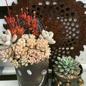 11月最後の投稿🎂 曇り☁だよ。 コロラータブランディディ×ルブラ ori苗です💖 だんだんと赤くなってきたけどパッカーンしてます! 鉢が大きすぎたみたい。 自作鉢❤