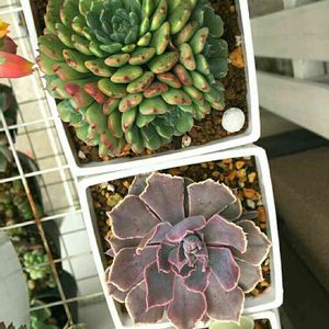 奥の豚とひよこちゃん。 母親に使わないからあげるよと言われて 持ってきたけど多肉を寄せ植えして 返そうと作りました❤ 手前右はファンタジー 高級多肉なので1本だけget 😅 左はすみれ牡丹 日陰で少し徒長してしまった😂