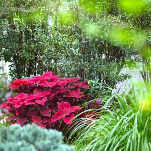 緑の中に コリウス レッドヘッドが一際 目を惹きます💕 台風予報に、カットしようか様子みようか、と、迷っています😅