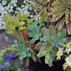寒さ益々😨 雪にはなりませんでしたが、未明には嵐のような強風に目が覚めました😅 数日前のpicですが、ユーフォルビア、昨年の夏のキチガイ雨で、弱った株を集めて秋に鉢植えにした子たちです。 葉っぱが ブラックは、ブラックバード 緑は、ウルフェニー 黄色は、アスコットレインボー 下の緑は 多肉の薄化粧 スィートアリッサムは、ポリポットに入れたまま植え込んでいます🤗 用土は乾燥気味に、多肉用土に腐葉土を少し足した土、アリッサムたけポリポットに培養土で、ポットごと埋め込んでいます。 ユーフォルビアはつぼみが見えてきましたヽ(^◇^*)/💛 この子たちのお花は、下のキータグ ✨ユーフォルビアをクリックしてみてね🤗