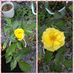 蒸し暑いです。 昨日左。 今日右。咲きました。 タウンクライヤーぽいです。😄😄😍 素敵な黄バラ、ありがとうございます。