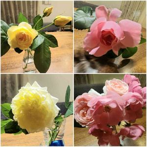 散歩中に見つけたお花。 頂いたバラは、キッチンのカウンターのところで、とてもいいかおりを放っております✨