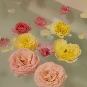 おうちシリーズ。 先日、イングリッシュガーデンをされてる方に頂いたバラが、ここ数日暖かいので、花びらが落ち始め、 娘がバラ風呂やろう‼️と言うので、 昨日は、バラ風呂でした🌹 気持ちは貴婦人です! あ~ステキな時間でした🎵