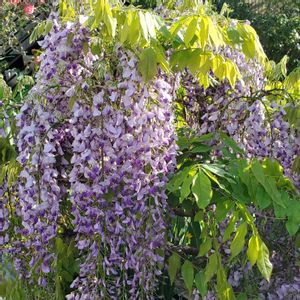 お散歩途中で毎年咲いてる 藤の花🌼 今年は一番良いときに通ったので、 写真を撮ってみました。 小さな木ですが、とても立派に咲いてます。