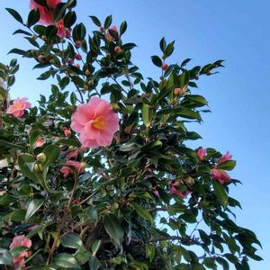 犬のお散歩でさざんかを発見! 青空に映えます!とてもキレイ🎵