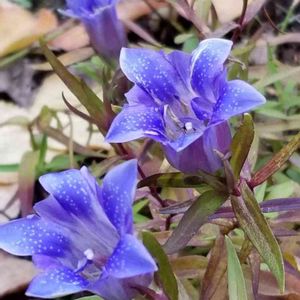 「笹竜胆(ささりんどう)」は葉の形が笹のようにとがるのが特徴の晩秋咲きのリンドウで、育てやすい山野草のひとつです。丈が高くなるので、秋の切花や茶花にも重宝します。