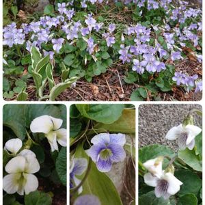 庭に勝手に咲いてくれるスミレたち🎵 ⬆️タチツボスミレ ちょっと植えたらいつの間にか群生地😂 ↙️名前のわからない白いスミレ ⬇️アメリカスミレ サイシン ↘️とても小さなツボスミレ お好きに咲いててね~🎵
