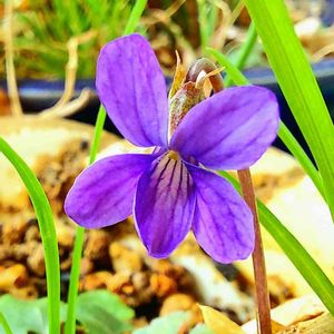 玉すだれの鉢の隅っこに咲いた、スミレ(だと思うけど)。 こぼれ種だと思うけど、咲くのはまだ少し早いと思うんだな。 それに、玉すだれの鉢にスミレは植えなかったぞ……。