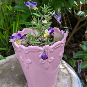 朝活〜🚶♀️ 黒葉すみれ🪴 1輪だけこの時期に咲いてくれてました✨ もう種がいっぱいついて鉢もパンパンなので植え替えてあげたいけど…。 秋まで待った方が良いのかな…。 本当はもっと葉も黒くてカッコいい感じの子なのですが間延びもしてる〜 育て方学ばなければ📖✨