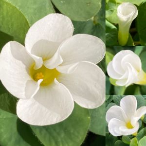 オキザリス 陽がよく当たる場所で 白花のオキザリスが 次々に咲いてます。 蕾がほどけ 花びらが開く様子が 可愛らしいですね。