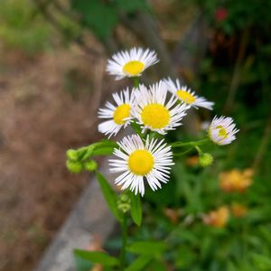 こんにちは😊 ❶今日のお花「ハルジオン」 よく似た「ヒメジョオン」と「エリゲロン」を並べてみました❣️ ❷「ハルジオン」ボランティア花壇の奥の方で咲いてます。 ❸「ヒメジョオン」土手で… ❹「エリゲロン」我が家の庭で… 全部、本日の撮影。 「ハルジオン」は花びらが多く糸状に見えます。 「ヒメジョオン」は花びらがやや少なく平たく見えます。 「エリゲロン」は「ヒメジョオン」の花に似てますが姿が横に広がり葉の形が違います。 「ハルジオン」と「ヒメジョオン」の葉は似てますが茎に葉っぱが巻いて見えるのが「ハルジオン」です。 並べると違いが分かりますが中々見分けができませんねー