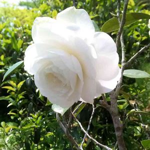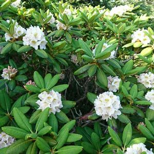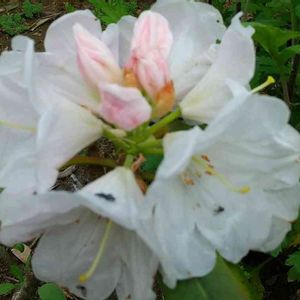 石楠花です、 白が綺麗です。✌️ 昨年は沢山咲いたのに、今年二輪、 この写真は一輪です。 沢山蕾がついた時は少し抜くと毎年バランス良く咲くのは知っているのですが、 中々抜けないです。