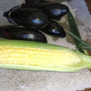 茄子ととうもろこし🌽の収穫です✨ アワノメイガの被害も無く、綺麗な歯並びですレンチンで頂きました。😃🥰